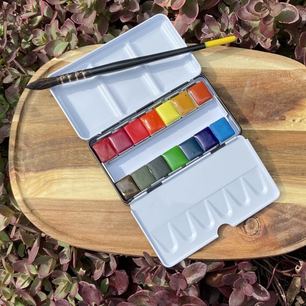 Fabriquées à partir de notre liant maison fait d'ingrédients naturels comme la gomme d'acacia, du miel local et des huiles essentielles, nous choisissons et testons les meilleurs pigments de partout comme des ocres, des oxide de fer, des terres naturelles et des pigments synthétiques modernes.