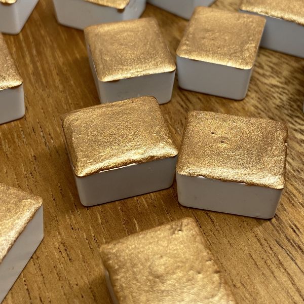 De par leur nature artisanale, les godets d'aquarelle peuvent contenir des petites bulles d'air, des craques ou d'autres variations normales. Ceci n'altère en rien la qualité de la peinture.