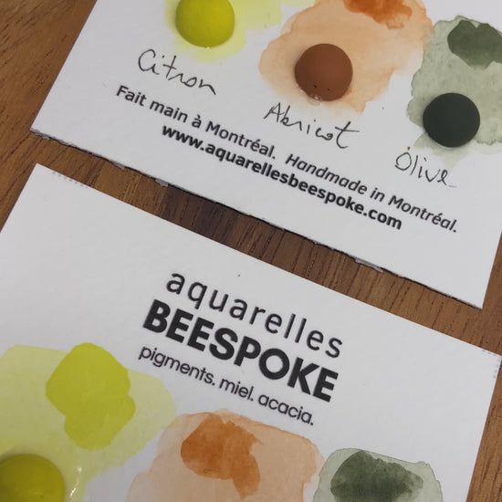 De par leur nature artisanale, les godets d'aquarelle peuvent contenir des petites bulles d'air, des craques ou d'autres variations normales. Ceci n'altère en rien la qualité de la peinture.